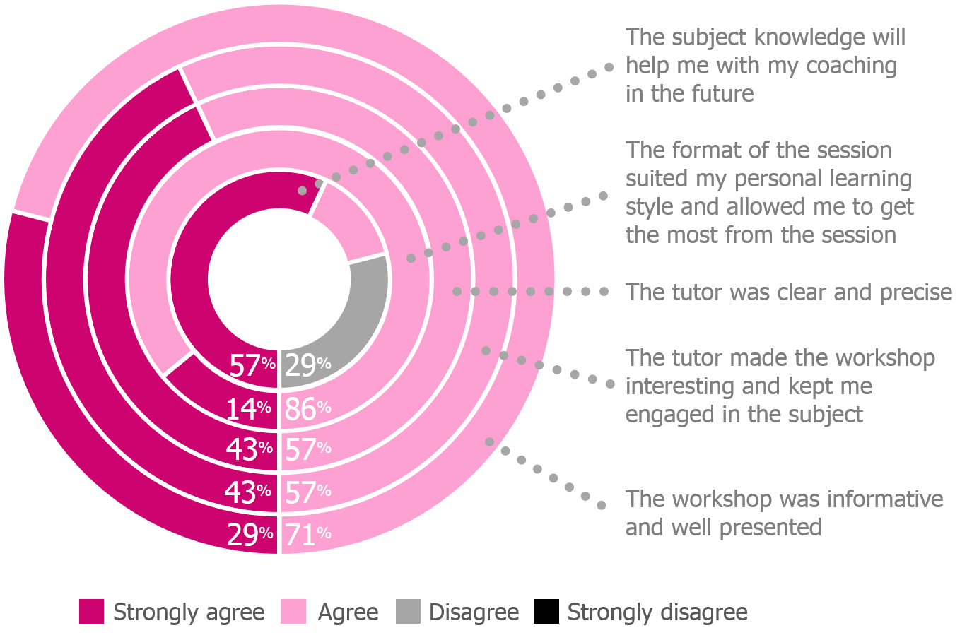 Having completed a self assessment questionnaire, the coaches reflected on how own their own and other's learning styles to identify the activities best suited to supporting continuous personal development.